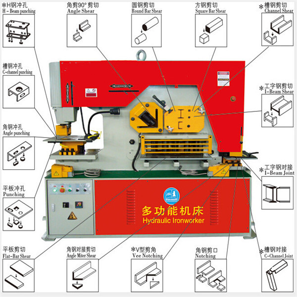 产品特点: 联合冲剪机是一种综合了金属剪切、冲孔、剪板、折弯等多种功能的机床设备,具有操作简便、能耗少、维护成本低等优点,是现代化制造业(如:冶金、桥梁、通讯、电力、军工等行业)金属加工先进设备。
